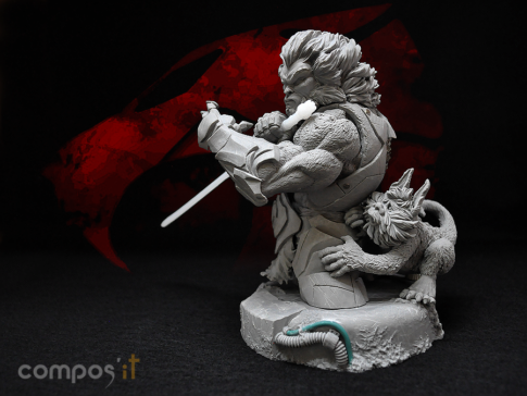 - Kit composé de 18 éléments: Tête, Corps, Socle, Bras droit, Bras gauche, Main droite, Main gauche, Epée, Ceinturon, Tissu avant, Tissu arrière, Tête de Snarf, Corps, Bras droit, Bras gauche, Patte droite, Patte gauche, Queue